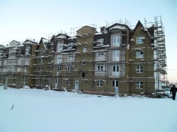 В корпусах № 3 и № 4 также близятся к завершению работы по остеклению. Кроме того, в корпусе № 3 идут работы по оштукатуриванию фасадного утеплителя и монтажу наружных дверей. В корпусе № 4 выполняется утепление фасадов и монтаж газораспределительного пункта.