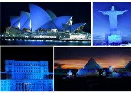 Вместе с Москвой синим цветом окрасятся Пирамилы в Египте, Статуя Христа Искупителя в Рио-де-Жанейро, небоскребы в Нью-Йорке, отель-парус Бурдж-эль-Араб в Дубае , оперный театр в Сиднее.
